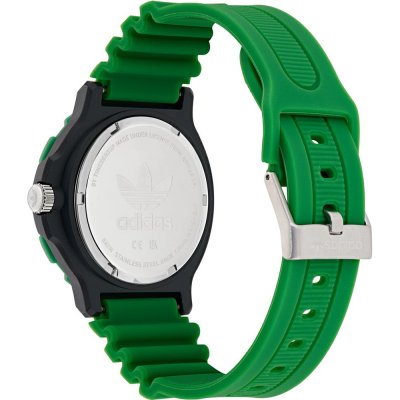 Este relógio Adidas tem uma caixa de Resina com um diâmetro de 40 mm e está equipado com uma bracelete de borracha. A caixa possui um movimento Timex e o relógio tem um vidro Mineral.