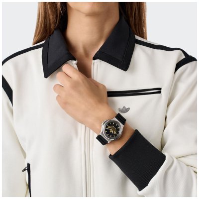 Este relógio Adidas tem uma caixa de Inox com um diâmetro de 41 mm e está equipado com uma bracelete de borracha. A caixa possui um movimento Timex e o relógio tem um vidro Mineral.