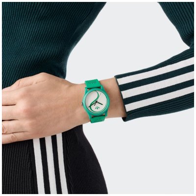 Este relógio Adidas tem uma caixa de Resina com um diâmetro de 38 mm e está equipado com uma bracelete de borracha. A caixa possui um movimento Timex e o relógio tem um vidro Acrílico.