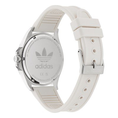 Este relógio Adidas tem uma caixa de Inox com um diâmetro de 40 mm e está equipado com uma bracelete de borracha. A caixa possui um movimento Timex e o relógio tem um vidro Mineral.