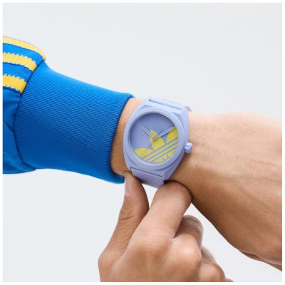Este relógio Adidas tem uma caixa de Biocerâmica com um diâmetro de 44 mm e está equipado com uma bracelete de Plástico de origem biológica. A caixa possui um movimento Timex e o relógio tem um vidro Mineral.