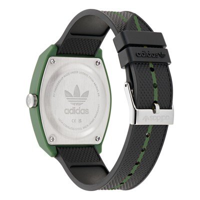 Este relógio Adidas tem uma caixa de Resina com um diâmetro de 38 mm e está equipado com uma bracelete de Resina. A caixa possui um movimento Timex e o relógio tem um vidro Acrílico.