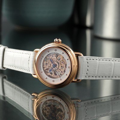 Este relógio Aerowatch tem uma caixa de Inox com um diâmetro de 35 mm e está equipado com uma bracelete de couro. A caixa possui um movimento Sellita e o relógio tem um vidro Safira.