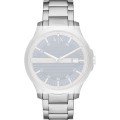 Esta bracelete de relógio Armani Exchange é feita de aço inoxidável e está fixada ao relógio através de pinos de pressão. A bracelete tem uma largura de 22 mm e fecha através de fivela dobrável com botões de pressão. A bracelete não tem uma montagem a direito, o que significa que esta bracelete só é adequada para os relógios listados abaixo.