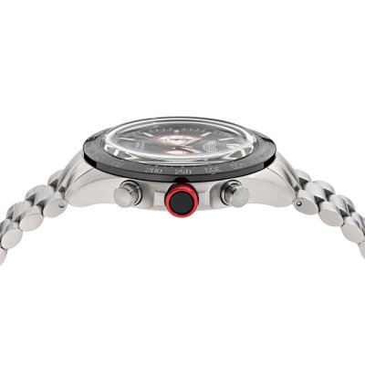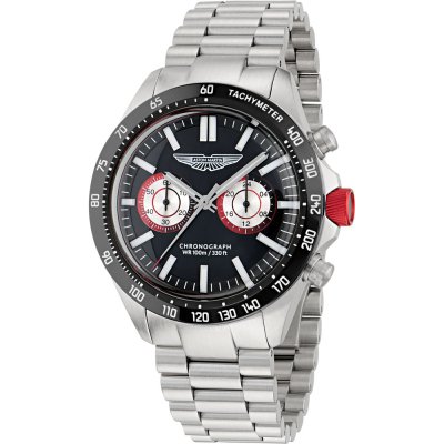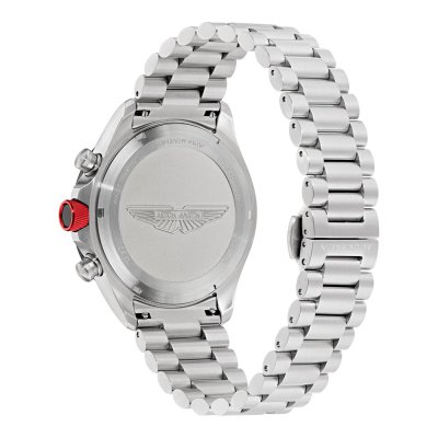Este relógio Aston Martin tem uma caixa de Inox com um diâmetro de 44 mm e está equipado com uma bracelete de Inox. A caixa possui um movimento Timex e o relógio tem um vidro Mineral.