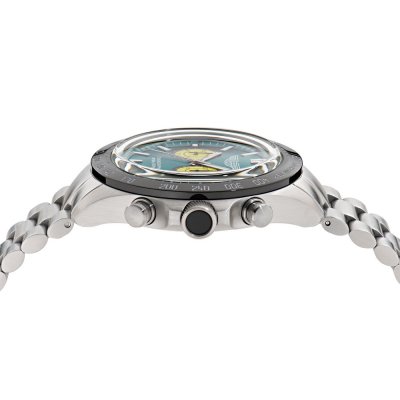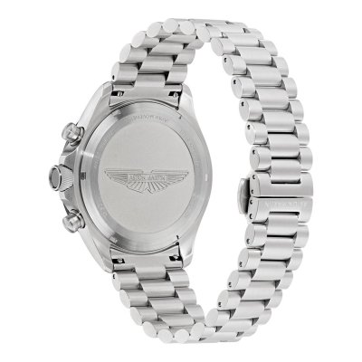 Este relógio Aston Martin tem uma caixa de Inox com um diâmetro de 44 mm e está equipado com uma bracelete de Inox. A caixa possui um movimento Timex e o relógio tem um vidro Mineral.