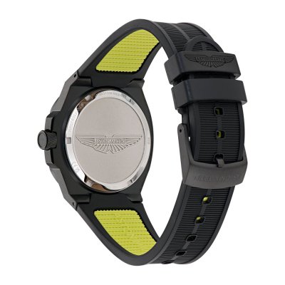 Este relógio Aston Martin tem uma caixa de Inox com um diâmetro de 40 mm e está equipado com uma bracelete de borracha. A caixa possui um movimento Timex e o relógio tem um vidro Mineral.