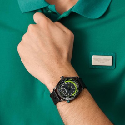Este relógio Aston Martin tem uma caixa de Inox com um diâmetro de 41 mm e está equipado com uma bracelete de borracha. A caixa possui um movimento Timex e o relógio tem um vidro Mineral.