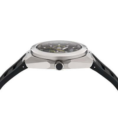 Este relógio Aston Martin tem uma caixa de Inox com um diâmetro de 42 mm e está equipado com uma bracelete de borracha. A caixa possui um movimento Timex e o relógio tem um vidro Mineral.