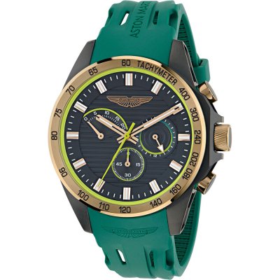 Este relógio Aston Martin tem uma caixa de Inox com um diâmetro de 44 mm e está equipado com uma bracelete de borracha. A caixa possui um movimento Seiko Instruments Inc. e o relógio tem um vidro Mineral.