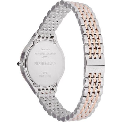 Este relógio Balmain tem uma caixa de Inox com um diâmetro de 29 mm e está equipado com uma bracelete de Inox. A caixa possui um movimento ETA e o relógio tem um vidro Safira.
