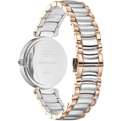 Este relógio Balmain tem uma caixa de Inox com um diâmetro de 33 mm e está equipado com uma bracelete de Inox. A caixa possui um movimento ETA e o relógio tem um vidro Safira.