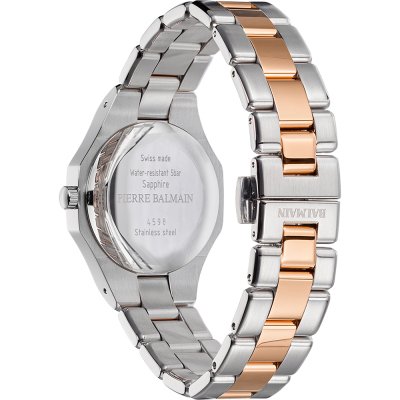 Este relógio Balmain tem uma caixa de Inox com um diâmetro de 33 mm e está equipado com uma bracelete de Inox. A caixa possui um movimento ETA e o relógio tem um vidro Safira.