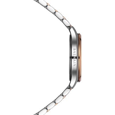 Este relógio Balmain tem uma caixa de Inox com um diâmetro de 27.5 mm e está equipado com uma bracelete de Inox. A caixa possui um movimento ETA e o relógio tem um vidro Safira.