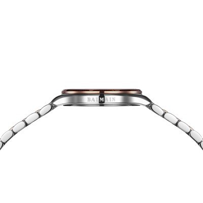 Este relógio Balmain tem uma caixa de Inox com um diâmetro de 32 mm e está equipado com uma bracelete de Inox. A caixa possui um movimento ETA e o relógio tem um vidro Safira.