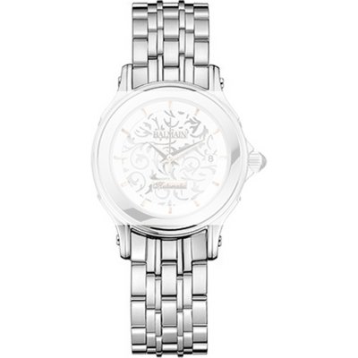Esta bracelete de relógio Balmain é feita de aço inoxidável e está fixada ao relógio através de pinos de pressão. A bracelete tem uma largura de 14 mm e fecha através de fivela butterfly com botões de pressão. A bracelete não tem uma montagem a direito, o que significa que esta bracelete só é adequada para os relógios listados abaixo.