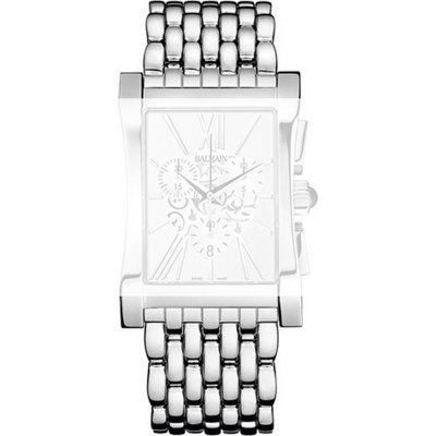 Esta bracelete de relógio Balmain é feita de aço inoxidável e está fixada ao relógio através de pinos de pressão. A bracelete tem uma largura de 23 mm e fecha através de fivela butterfly com botões de pressão. A bracelete não tem uma montagem a direito, o que significa que esta bracelete só é adequada para os relógios listados abaixo.