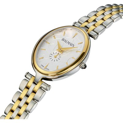Este relógio Balmain tem uma caixa de Inox com um diâmetro de 26 mm e está equipado com uma bracelete de Inox. A caixa possui um movimento ETA e o relógio tem um vidro Safira.