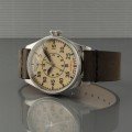 Este relógio Bauhaus tem uma caixa de Inox com um diâmetro de 42 mm e está equipado com uma bracelete de couro. A caixa possui um movimento Sellita e o relógio tem um vidro Safira.