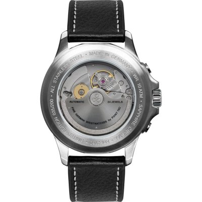 Este relógio Bauhaus tem uma caixa de Inox com um diâmetro de 40 mm e está equipado com uma bracelete de couro. A caixa possui um movimento Miyota e o relógio tem um vidro Safira.