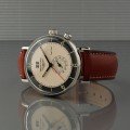 Este relógio Bauhaus tem uma caixa de Inox com um diâmetro de 41 mm e está equipado com uma bracelete de couro. A caixa possui um movimento Ronda e o relógio tem um vidro K1 Mineral.