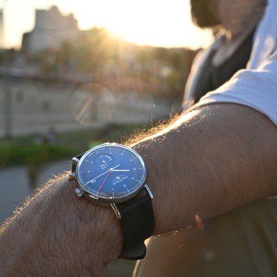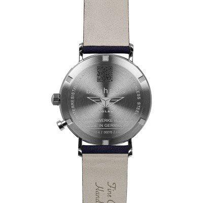 Este relógio Bauhaus tem uma caixa de Inox com um diâmetro de 41 mm e está equipado com uma bracelete de couro. A caixa possui um movimento Seiko e o relógio tem um vidro K1 Mineral.