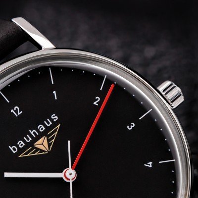 Este relógio Bauhaus tem uma caixa de Inox com um diâmetro de 41 mm e está equipado com uma bracelete de couro. A caixa possui um movimento Ronda e o relógio tem um vidro K1 Mineral.