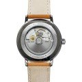 Este relógio Bauhaus tem uma caixa de Inox com um diâmetro de 41 mm e está equipado com uma bracelete de couro. A caixa possui um movimento Miyota e o relógio tem um vidro K1 Mineral.