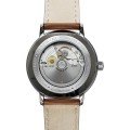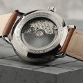 Este relógio Bauhaus tem uma caixa de Inox com um diâmetro de 41 mm e está equipado com uma bracelete de couro. A caixa possui um movimento Miyota e o relógio tem um vidro K1 Mineral.