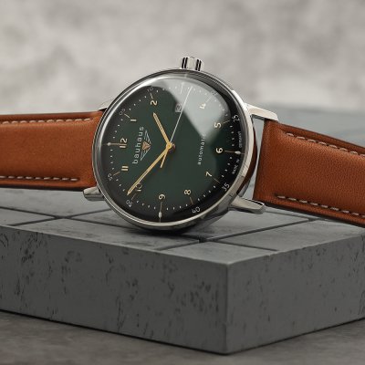 Este relógio Bauhaus tem uma caixa de Inox com um diâmetro de 41 mm e está equipado com uma bracelete de couro. A caixa possui um movimento Miyota e o relógio tem um vidro K1 Mineral.
