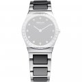 Esta bracelete de relógio Bering é feita de cerâmica e está fixada ao relógio através de pinos de pressão. A bracelete tem uma largura de 20 mm e fecha através de fivela dobrável com botões de pressão. A bracelete não tem uma montagem a direito, o que significa que esta bracelete só é adequada para os relógios listados abaixo.