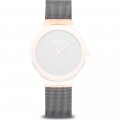 Esta bracelete de relógio Bering é feita de aço inoxidável e está fixada ao relógio através de parafusos. A bracelete tem uma largura de 16 mm e fecha através de fecho milanese. A bracelete não tem uma montagem a direito, o que significa que esta bracelete só é adequada para os relógios listados abaixo.
