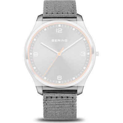 Esta bracelete de relógio Bering é feita de tecido e está fixada ao relógio através de pinos de pressão. A bracelete tem uma largura de 20 mm e fecha através de fecho. A bracelete tem uma montagem a direito, o que significa que esta bracelete é adequada para todos os relógios Bering com montagem da bracelete a direito.