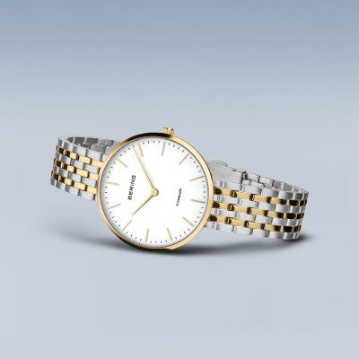 Este relógio Bering tem uma caixa de Titânio com um diâmetro de 34 mm e está equipado com uma bracelete de Titânio. A caixa possui um movimento Miyota e o relógio tem um vidro Safira.