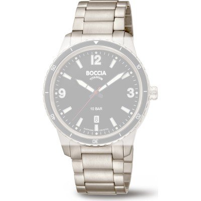 Esta bracelete de relógio Boccia é feita de titânio e está fixada ao relógio através de pinos de pressão. A bracelete tem uma largura de 21 mm e fecha através de fivela dobrável com botões de pressão. A bracelete não tem uma montagem a direito, o que significa que esta bracelete só é adequada para os relógios listados abaixo.