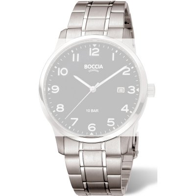 Esta bracelete de relógio Boccia é feita de titânio e está fixada ao relógio através de pinos de pressão. A bracelete tem uma largura de 21 mm e fecha através de fivela dobrável com botões de pressão. A bracelete não tem uma montagem a direito, o que significa que esta bracelete só é adequada para os relógios listados abaixo.
