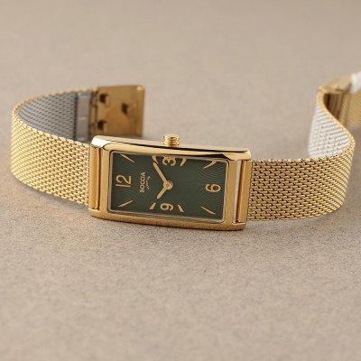 Este relógio Boccia tem uma caixa de Titânio com um diâmetro de 18 mm e está equipado com uma bracelete de Inox. A caixa possui um movimento Miyota e o relógio tem um vidro Mineral.