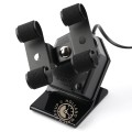 Este enrolador de relógio preto, da marca Augusta, parece diferente do seu enroladorr comum. É feito de plástico em combinação com metal e é adequado para dois relógios, em que a direção de rotação é determinada aleatoriamente. No entanto, pode influenciar isso ligando e desligando o enrolador do relógio.