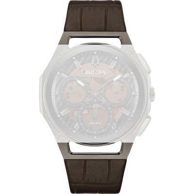Esta bracelete de relógio Bulova é feita de couro e está fixada ao relógio através de parafusos. A bracelete tem uma largura de 27 mm e fecha através de fivela desdobrável. A bracelete não tem uma montagem a direito, o que significa que esta bracelete só é adequada para os relógios listados abaixo.