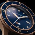 Esta Edição Especial do relógio de mergulho MIL-SHIPS baseia-se num protótipo desenvolvido em colaboração com a Marinha dos EUA em 1957. O relógio celebra o 150º aniversário da Bulova. O relógio tem uma caixa em CuSn8-Bronze jato de areia, a cor de um capacete de mergulho do século XIX. Um material muito resistente que desenvolverá uma pátina natural ao longo do tempo. O mostrador azul intenso combina com a luneta de alumínio bidirecional para um aspeto de inspiração vintage. Aplicado com marcações super brilhantes, um indicador de humidade em dois tons e um vidro de safira com uma proteção antirreflexo de 5 camadas. A bracelete é feita de uma moldagem especial de borracha e nylon cordura® para maior durabilidade e conforto. O fundo da caixa tem uma gravação que celebra o 150º aniversário da Bulova.