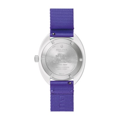 Este relógio Bulova tem uma caixa de Cerâmica híbrida com um diâmetro de 41 mm e está equipado com uma bracelete de Tecido. A caixa possui um movimento Miyota e o relógio tem um vidro Mineral.