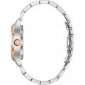 Este relógio Bulova tem uma caixa de Inox com um diâmetro de 34 mm e está equipado com uma bracelete de Inox. A caixa possui um movimento Miyota e o relógio tem um vidro Safira.