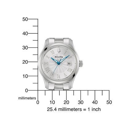 Este relógio Bulova tem uma caixa de Inox com um diâmetro de 29 mm e está equipado com uma bracelete de Inox. A caixa possui um movimento Bulova e o relógio tem um vidro Mineral.