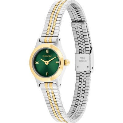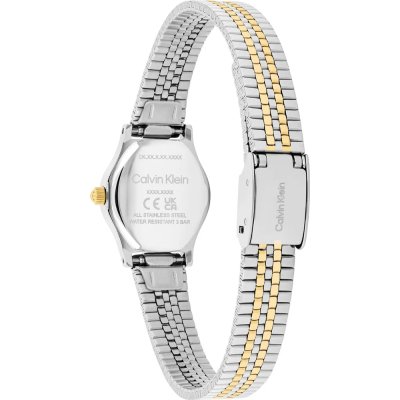 Este relógio Calvin Klein tem uma caixa de Inox com um diâmetro de 18 mm e está equipado com uma bracelete de Inox. A caixa possui um movimento Seiko Instruments Inc. e o relógio tem um vidro Mineral.