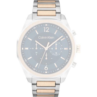 Esta bracelete de relógio Calvin Klein é feita de aço inoxidável e está fixada ao relógio através de pinos de pressão. A bracelete tem uma largura de 22 mm e fecha através de fivela dobrável com botões de pressão. A bracelete não tem uma montagem a direito, o que significa que esta bracelete só é adequada para os relógios listados abaixo.