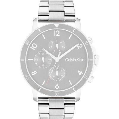 Esta bracelete de relógio Calvin Klein é feita de aço inoxidável e está fixada ao relógio através de pinos de pressão. A bracelete tem uma largura de 23 mm e fecha através de fivela dobrável com botões de pressão. A bracelete tem uma montagem a direito, o que significa que esta bracelete é adequada para todos os relógios Calvin Klein com montagem da bracelete a direito.