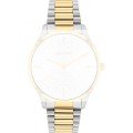 Esta bracelete de relógio Calvin Klein é feita de aço inoxidável e está fixada ao relógio através de pinos de pressão. A bracelete tem uma largura de 17 mm e fecha através de fivela dobrável com botões de pressão. A bracelete não tem uma montagem a direito, o que significa que esta bracelete só é adequada para os relógios listados abaixo.