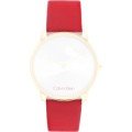 Esta bracelete de relógio Calvin Klein é feita de couro e está fixada ao relógio através de pinos de pressão. A bracelete tem uma largura de 18 mm e fecha através de fecho. A bracelete tem uma montagem a direito, o que significa que esta bracelete é adequada para todos os relógios Calvin Klein com montagem da bracelete a direito.