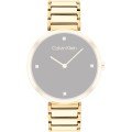 Esta bracelete de relógio Calvin Klein é feita de aço inoxidável e está fixada ao relógio através de pinos em aço. A bracelete tem uma largura de 16 mm e fecha através de fivela dobrável com botões de pressão. A bracelete não tem uma montagem a direito, o que significa que esta bracelete só é adequada para os relógios listados abaixo.
