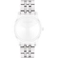 Esta bracelete de relógio Calvin Klein é feita de aço inoxidável e está fixada ao relógio através de pinos de pressão. A bracelete tem uma largura de 16 mm e fecha através de fivela dobrável com botões de pressão. A bracelete não tem uma montagem a direito, o que significa que esta bracelete só é adequada para os relógios listados abaixo.
